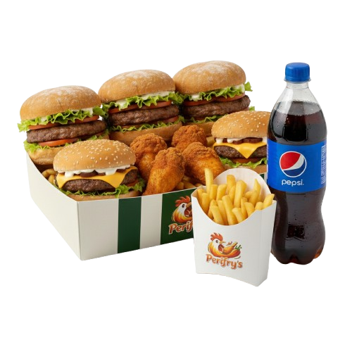 x4 Steak Burgers & x4 Cheese Burgers 🍔🍔 x10 Fried Wings 🍗x4 Reg Fries 🍟 Bottled Drink 🥤🥤